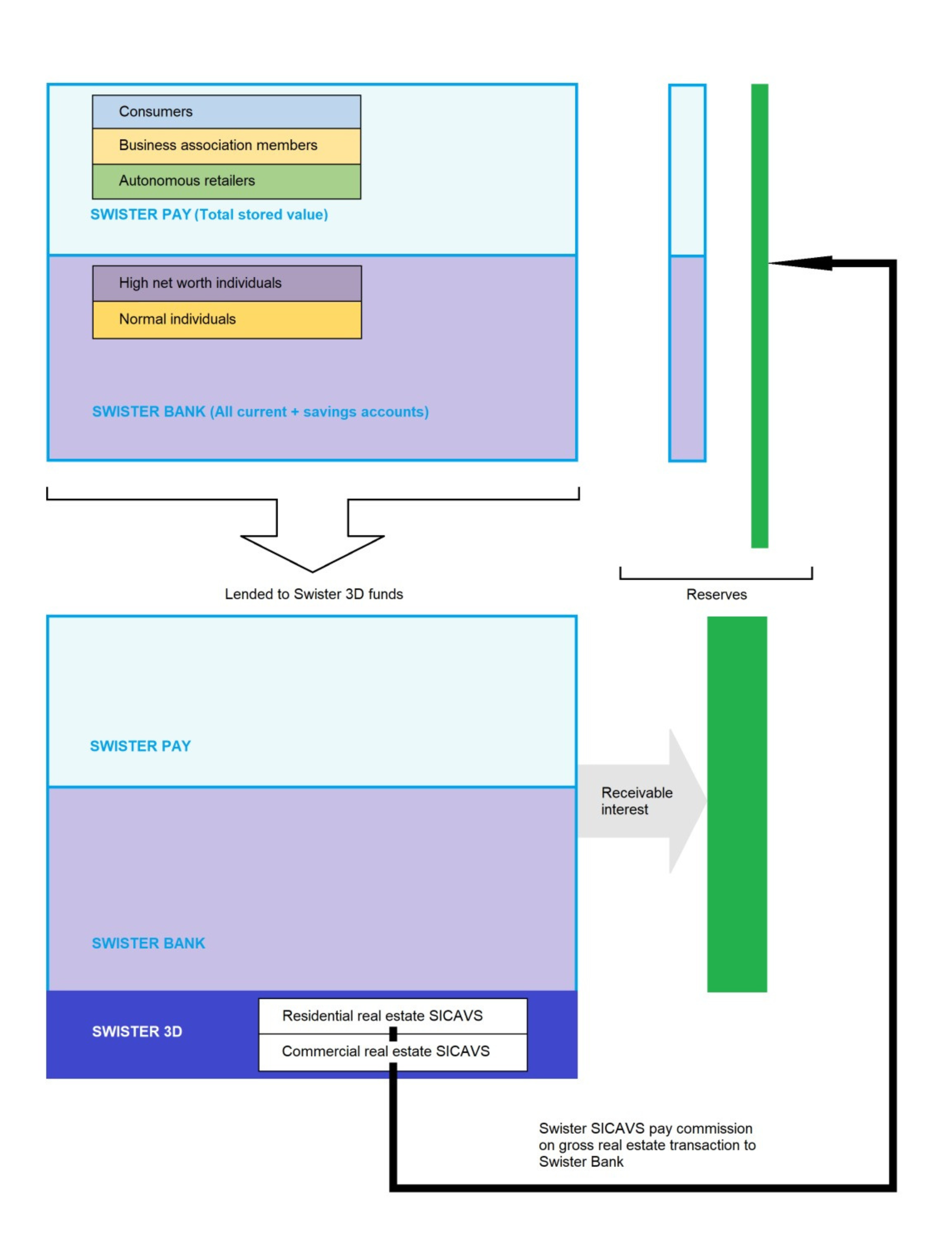 Swister’s revenue primarily comes from its Swister Pay platform, akin to PayPal, eBay, and WhatsApp, gathering savings from users and merchants. 45% of these savings stem from platform transactions, with the rest from direct clients, mainly affluent individuals. The bulk of these funds (95%) is invested in Swister’s luxury real estate ventures across diverse markets, with a small portion (5%) reserved for risk management and liquidity. The self-financing aspect of the real estate funds, where shareholders contribute 22.5% through the 3D application, bolsters Swister’s revenue model, ensuring sustainability and income diversification.